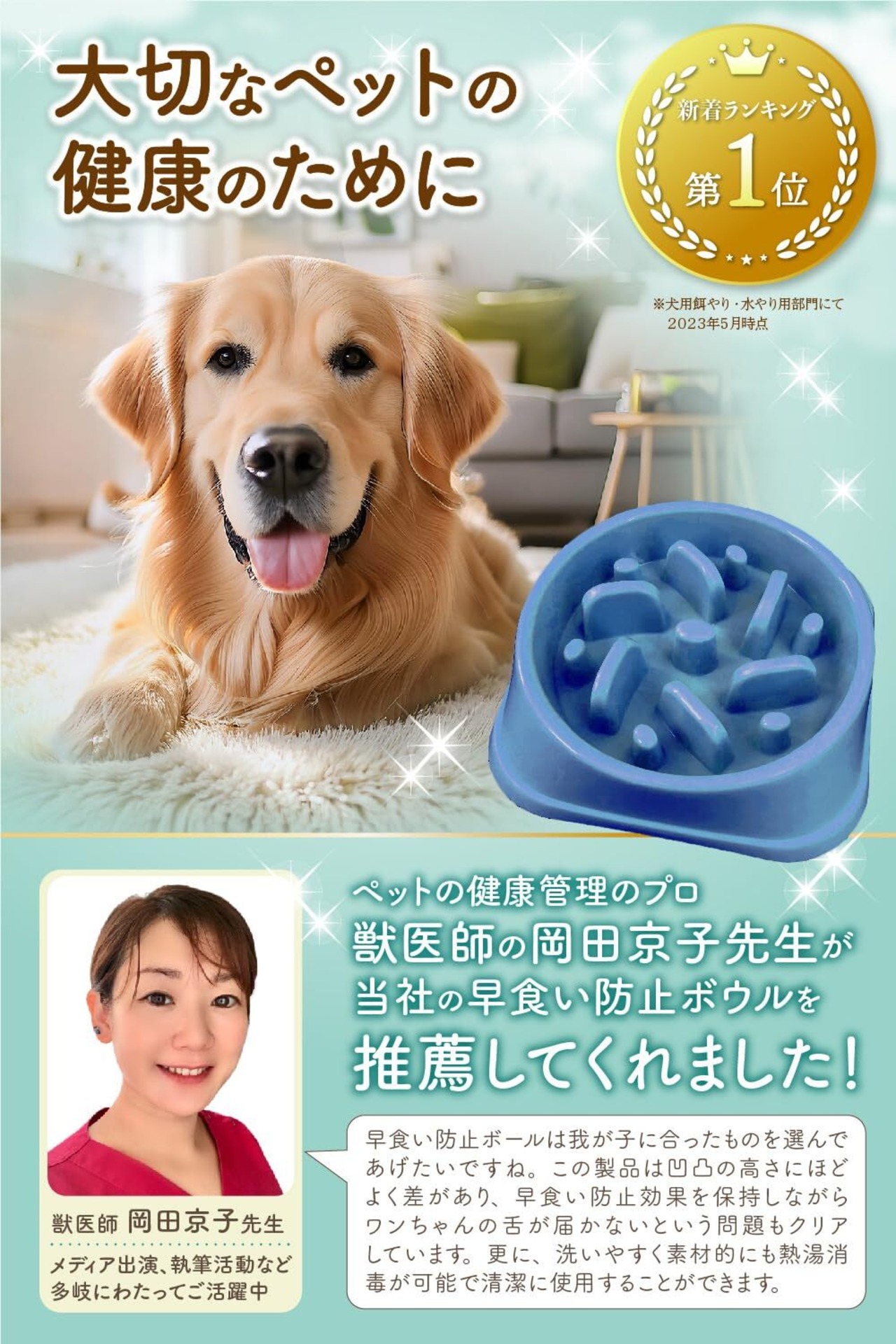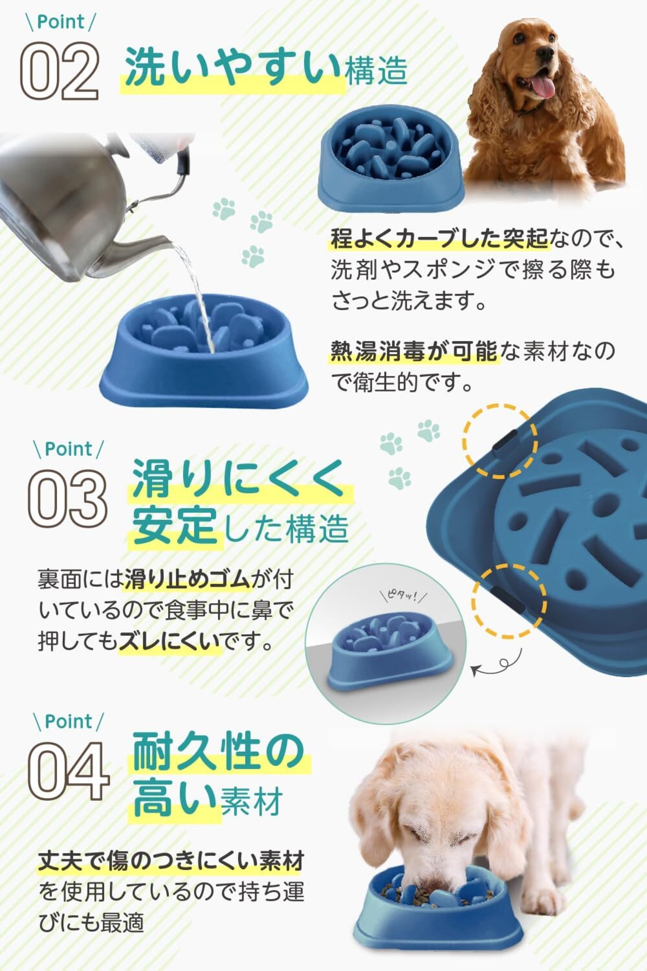 【獣医師推薦】 早食い防止 食器 犬 【独自の凹凸設計】 ワンちゃん 餌入れ (M,ライトネイビー)