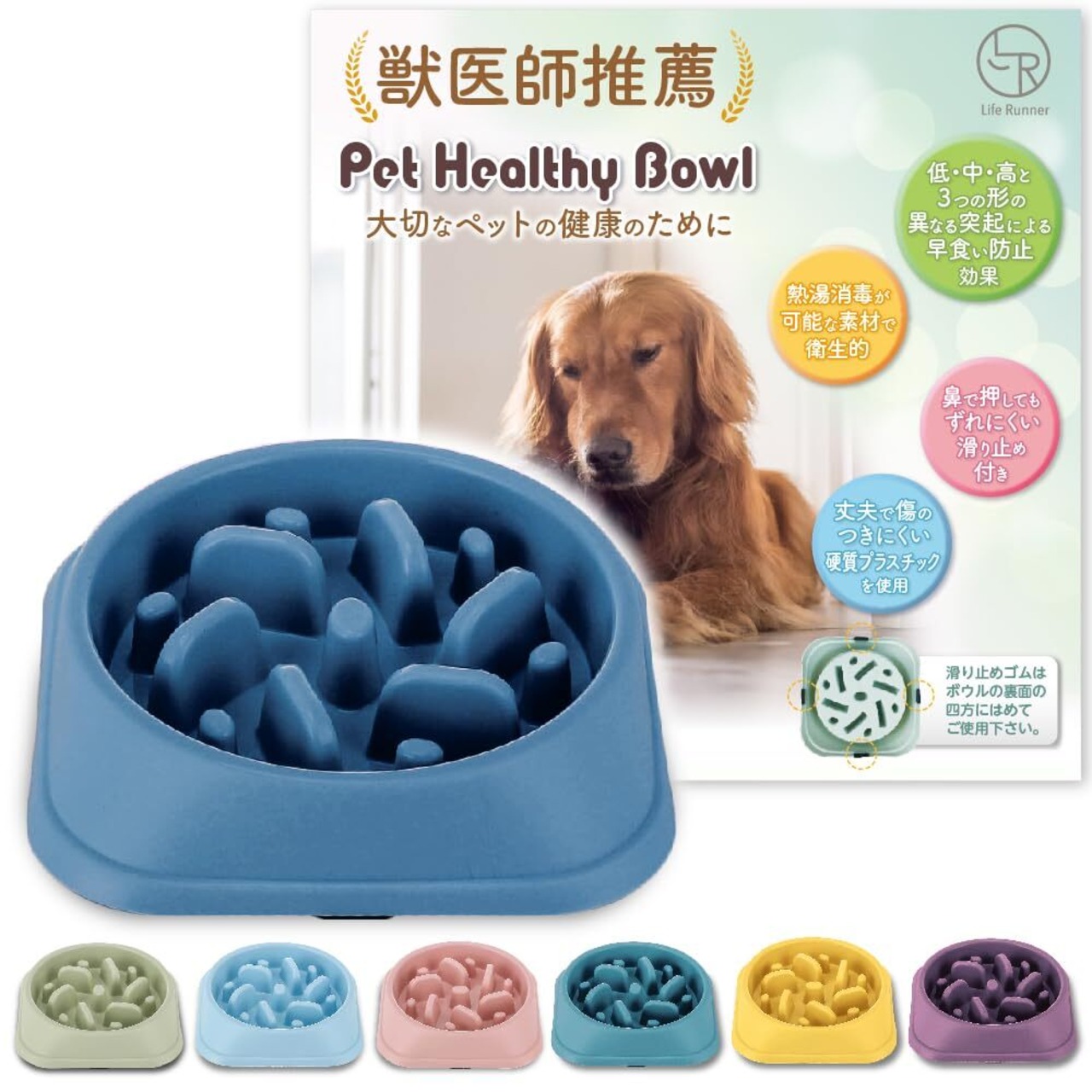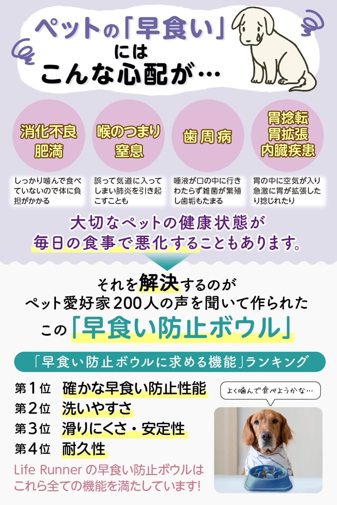 【獣医師監修】早食いを防ぐための突起はペットのストレスにならないよう計算された曲面形状で、低・中・高と3つの形の異なる形状がバランス良く配置されています。獣医師さんからも推薦の言葉をいただきました。