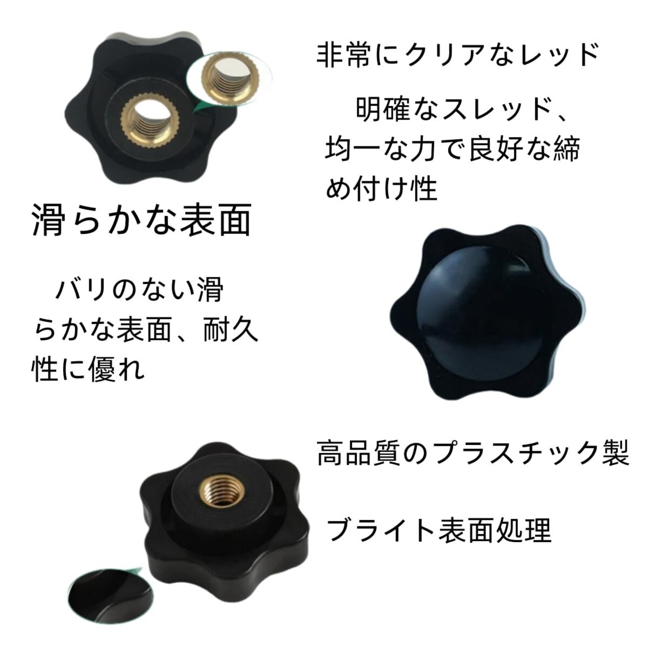 素材:スターノブナットはプラスチックと銅で作られており、耐腐食性があり、丈夫で耐摩耗性に優れ、長期間使用できます