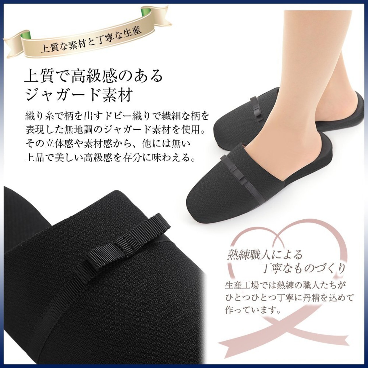 【高級感のあるデザイン】きちんとしたシーンに似合う フォーマルスリッパ!足元からきちんと感を演出できます!高級感のあるドビー織の日本製素材を使用。お父様やお子様とお揃いで統一感のある足元を!
