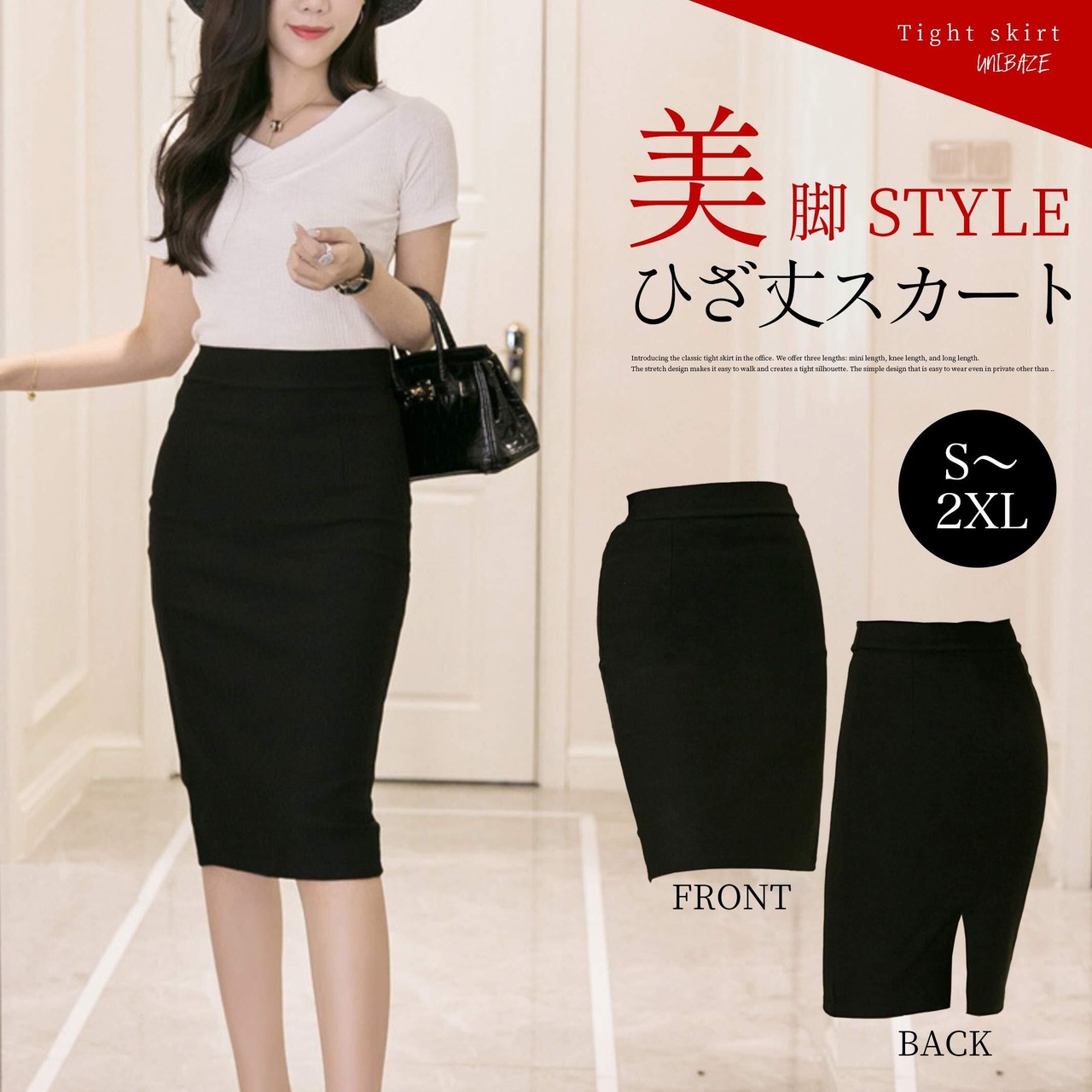 [ユニベイズ] ミニ〜ロング タイトスカート レディース 黒 ブラック スリット OL オフィス スカート ストレッチ