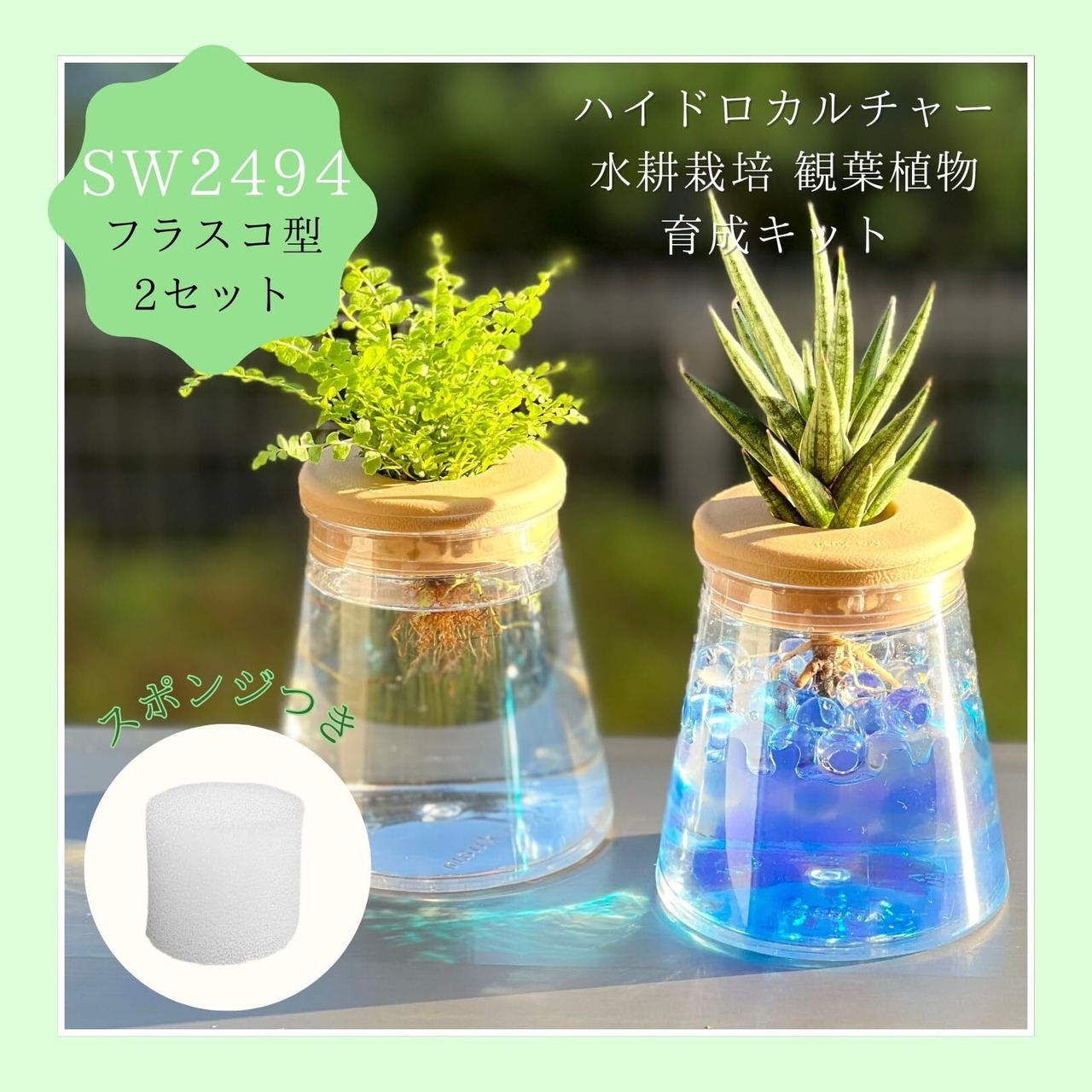 3world ハイドロカルチャー 水耕栽培 観葉植物 育成キット スポンジ付 透明 プラスチック ポット SW2494(フラスコ型)2セット