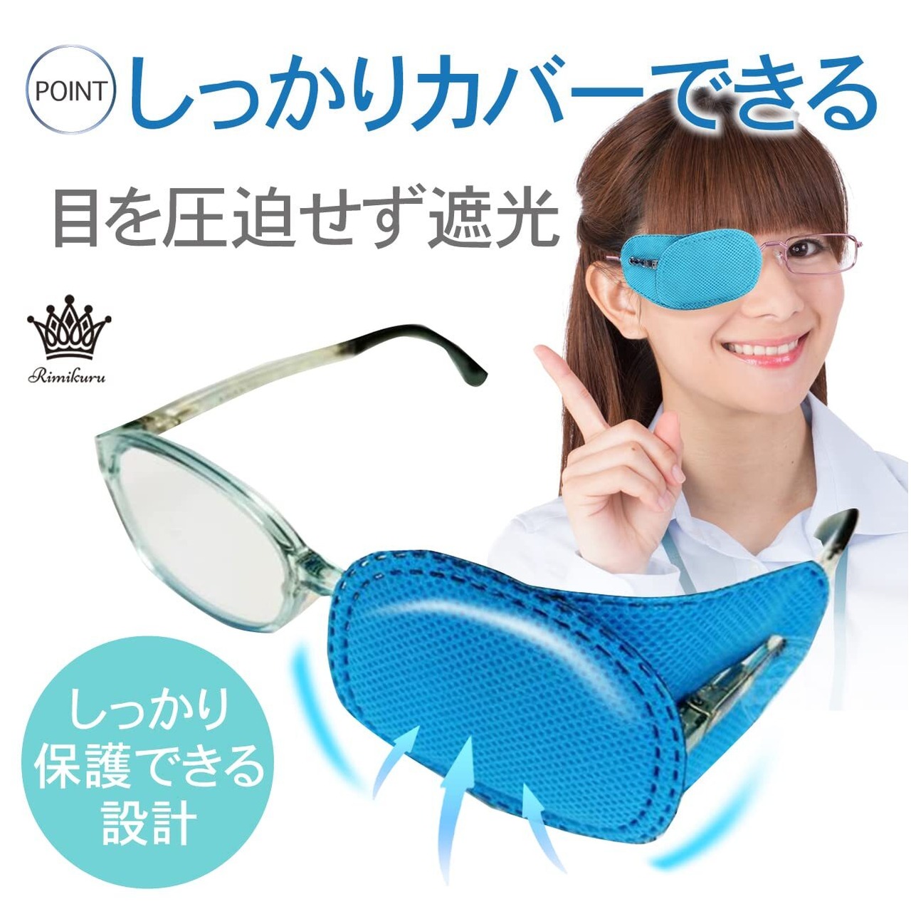 目のケアに最適:こちらの眼帯 メガネカバーはスライドさせるだけで取り付け・取り外しができるので、簡単に目の周辺をカバーし優しく快適に保護します。普段のアイケアや弱視、斜視のトレーニングなどにご活用ください。