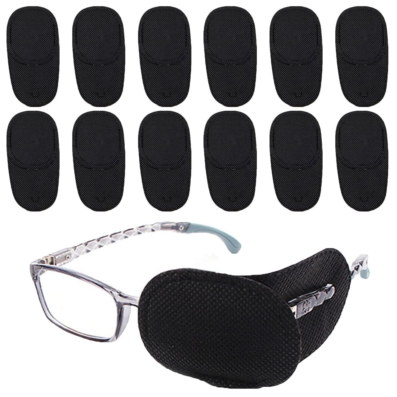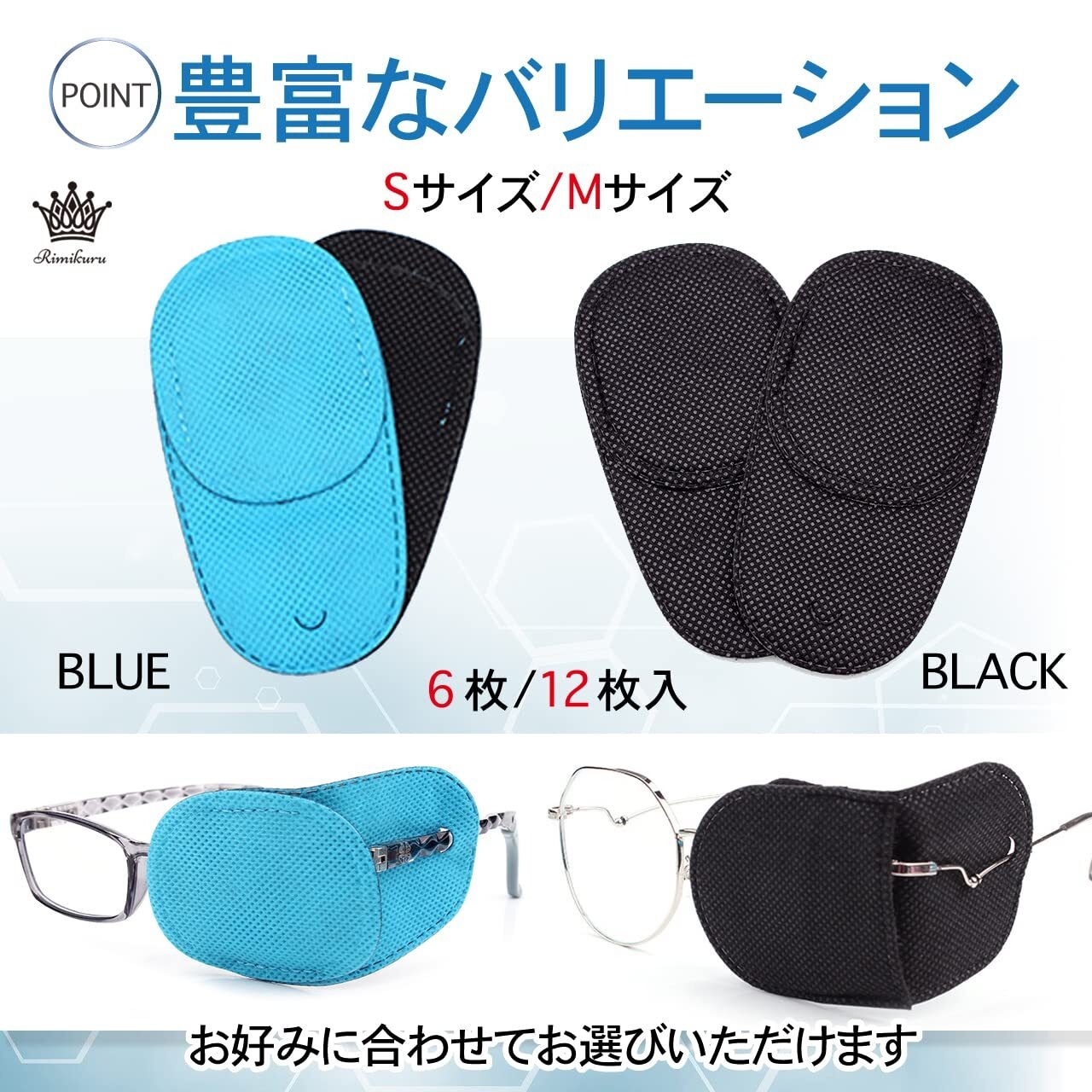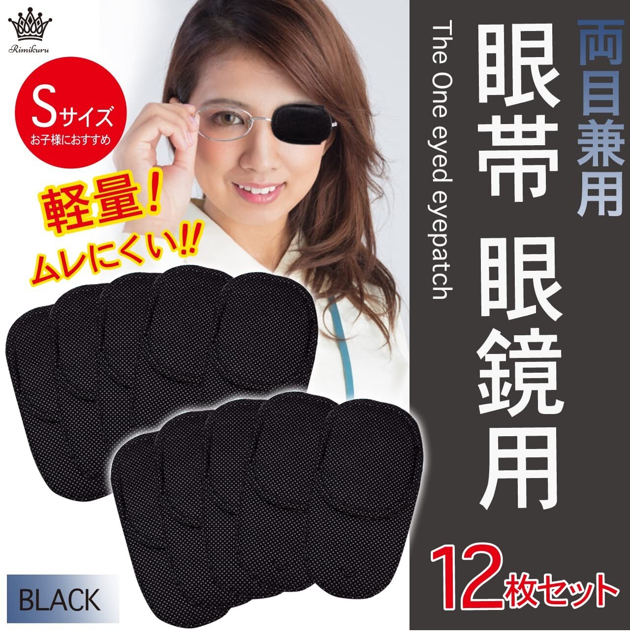 Rimikuru 眼帯 眼鏡 メガネ用 6枚/12枚入 斜視 メガネ カバー 右目 左目 アイパッチ 両目 片目眼帯 黒 (Sサイズ, ブラック12枚入)