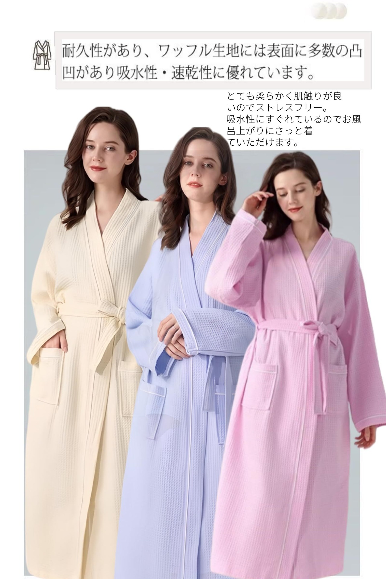 『ホテル級の快適感』:高級ホテル仕様のワッフル生地を採用、肌にまとわりつかず通気性抜群。着用時に肌の乾燥を防ぎ、四季を問わず快適にご利用いただけます。