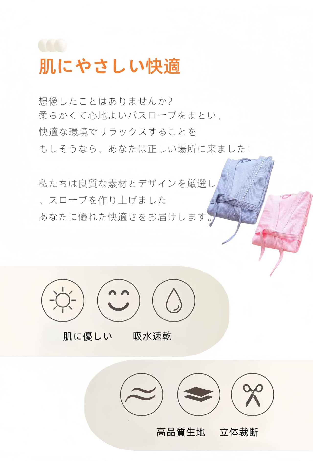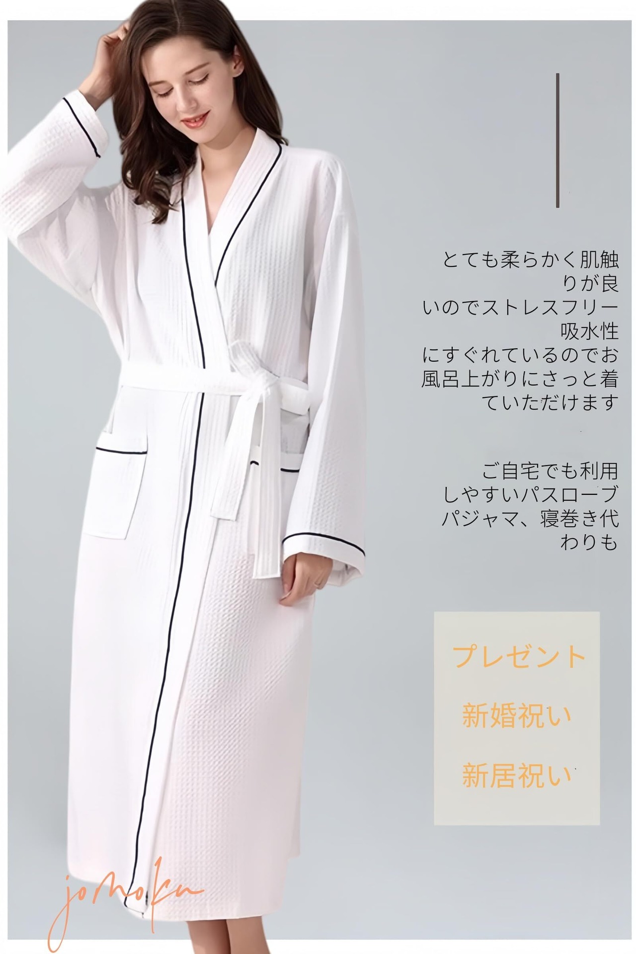 [Jomoku] バスローブ メンズ レディース ワッフル生地 立体的に織られ 綿100% 部屋着 ガウン ルームウェア 優しい肌触り 男女兼用 ホテル お風呂上り 吸水 速乾 保温 バス用品 春夏秋