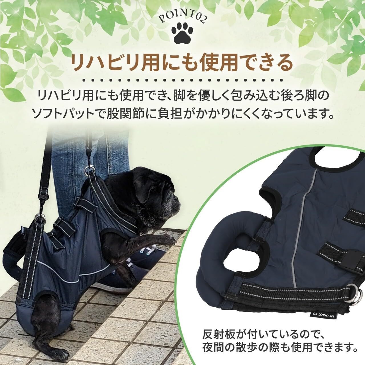 MEUMOTTO 犬 ハーネス 胴衣型【ドッグトレーナー推奨】胴衣型ペットハーネス 犬用ハーネス 犬ハーネス 介護ハーネス 小型犬 中型犬 大型犬 歩行補助 老犬 けが バックルで簡単装着 脱着可能ストラップ 反射板付き ネイビー (XL)