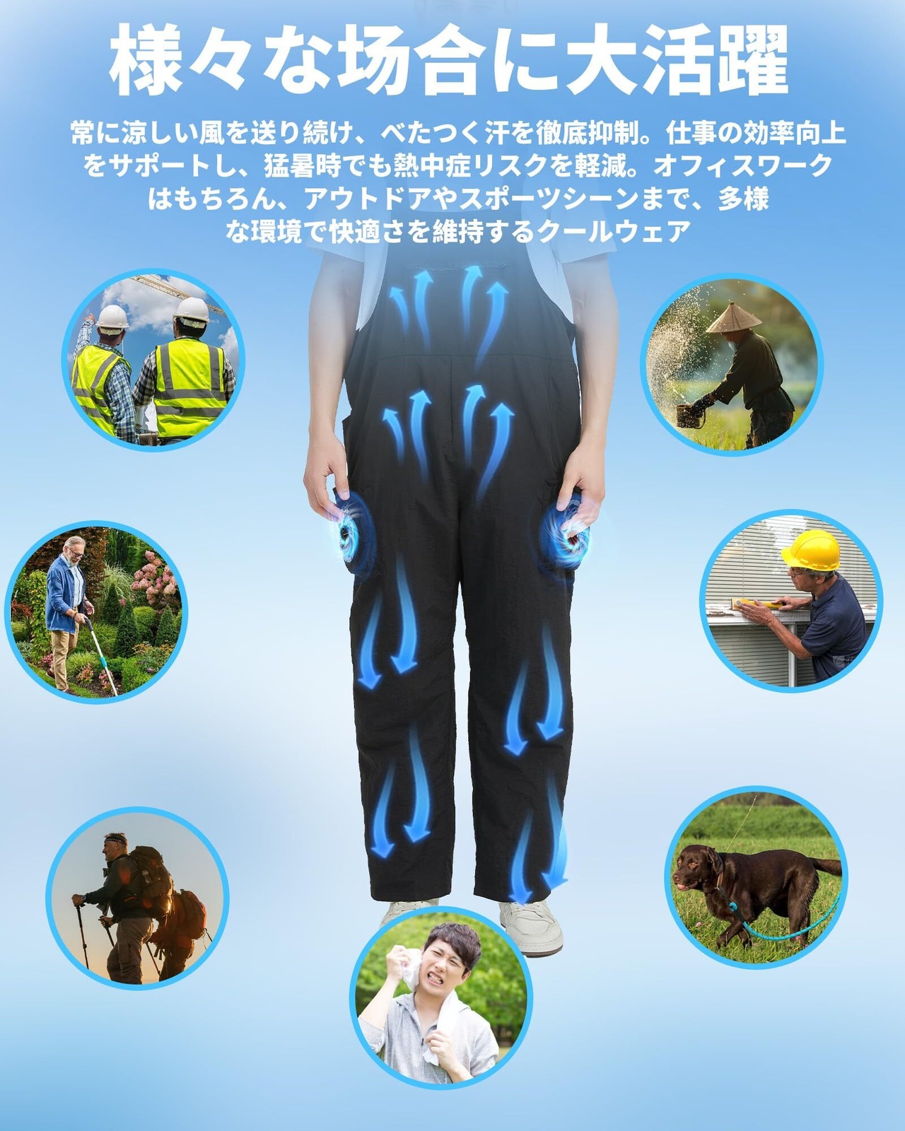 【大きいサイズ対応空調作業ズボン アイテム】S/M-L/XLがあり、対応体型幅広い!ユニセックスの色&サイズ、男女兼用になります!S/M:目安身長と体重→165-175cm/55-70㎏、L/XL:目安身長と体重→175-185cm/65-80㎏、冷却パンツの生地はとても薄いので、冷却ファンをつけると作業パンツがふわっと膨らみ、肌に直接触れないようになり、気流が空調作業パンツの内部に循環流通します。空気は裾ロとウェストから排出、マイナス10℃の冷感を実現します!ロングパンツ仕様になり、強い日差しからお肌を守ってくれます。【注: ファンパンツは大きめのサイズですので、サイズ表に従って必要なサイズをお選びください】(ファンとバッテリーは付属していません)